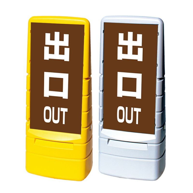 樹脂スタンド看板 マルチポップサイン 「 OUT 出口 / 茶色 」 片面のみ 本体カラー(イエロー・グレー) 反射加工も出来ます!