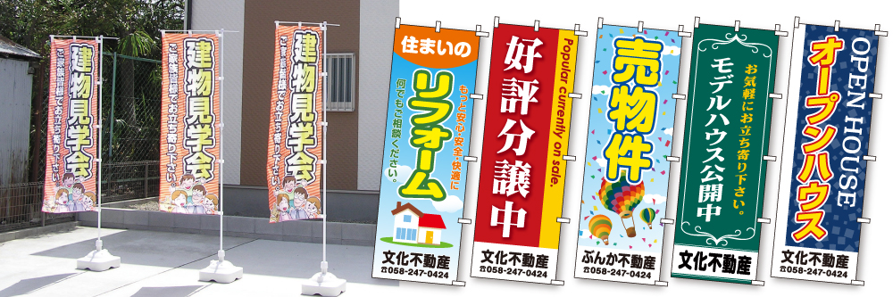 5. 不動産用のぼり旗「不動産の無料査定いたします」60cm×180cm ポリエステル製
