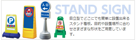 駐車場内で車両の誘導にご利用頂けるスリムなデザインのスタンド看板。樹脂製ですので安心・安全。小型ですのでお車だけでなく人の誘導にも便利です。