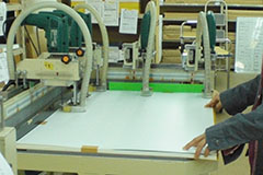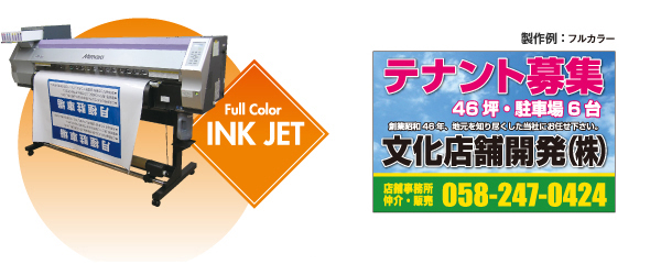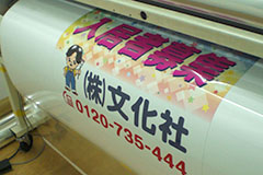印刷されたシートの表面に、UV(紫外線)カットのラミネート加工を施します。 ラミネート加工により、日光や風雨から印刷面が守られますので、耐久性が向上します。 弊社では、インクジェット出力機によるフルカラー印刷は、全てラミネート加工を施しています。