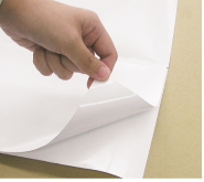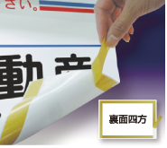 裏面が全面粘着のシール素材です。台紙を剥がしてステッカーとしてすぐにご使用が可能です。ビニール製なので屋外での使用が可能で雨に濡れても大丈夫です。当店では、看板の種類に合わせ、粘着糊(強粘着、再剥離などのタイプ)を使い分けしています。