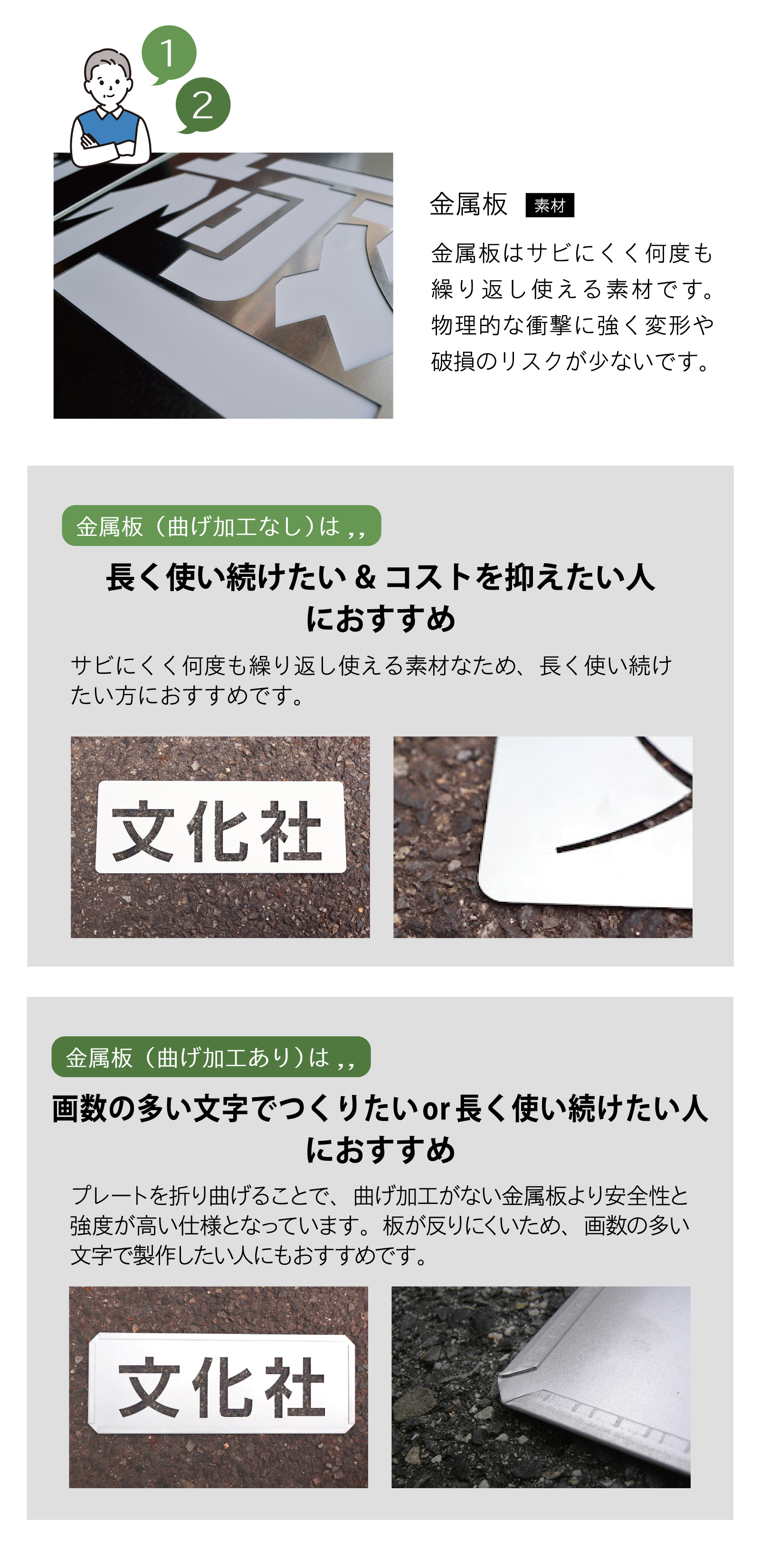 | 文字の縦サイズ | 金属製:最小5cm~最大90cmまで 厚紙製:最小5cm~最大70cmまで |